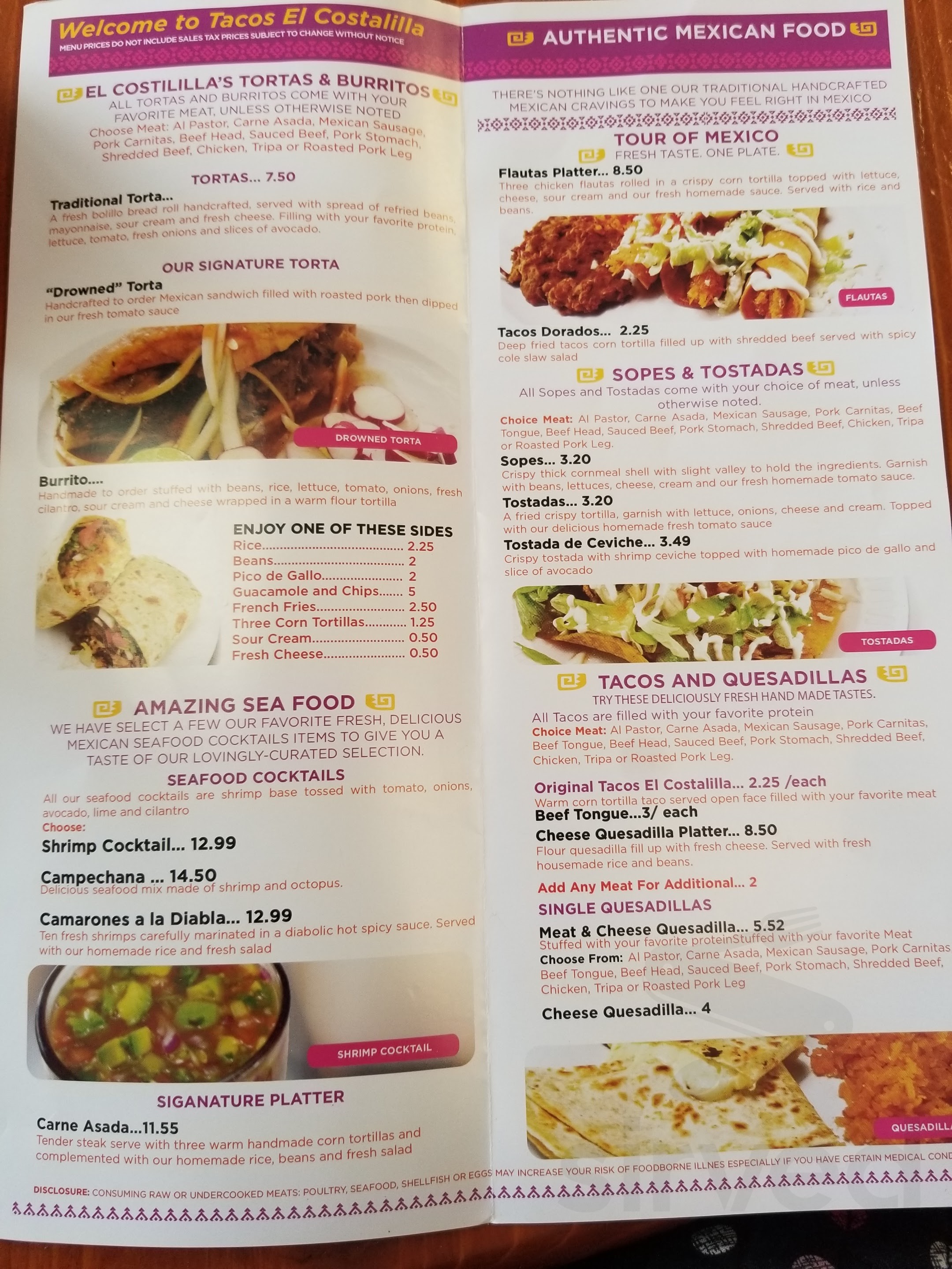Tacos El Costalilla Menu In Alexandria Virginia Usa
